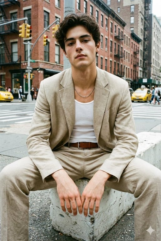 A highly specific prompt for generating raw daylight street photography with an early-2000s analog film aesthetic. It details the subject's pose, outfit, emotion, and the NYC environment, crucially requiring the model to preserve the facial features from an uploaded photo exactly, making it suitable for image-to-image or face-swapping tasks.