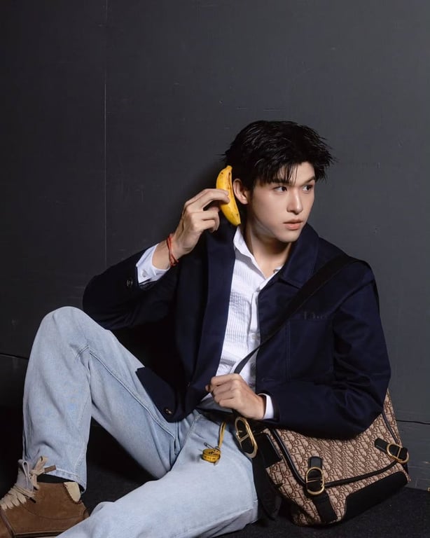This tweet contains lyrics from a song, repeating the phrase 'Ba-banana ba-ba-banana-nana,' followed by Korean text describing the time and feeling hot despite drinking iced Americano, concluding with banana, cloud, blue heart, and sparkle emojis. The text and emojis together could be interpreted as a descriptive prompt for an image or video.