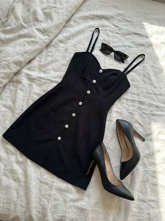 A short English prompt for generating an image where each piece of a girlâs clothing is placed separately on a bed.