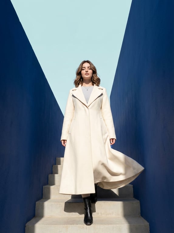 A short, descriptive prompt focusing on a cool color palette, bold energy, wide angles, sharp shadows, and clean lines for image generation.