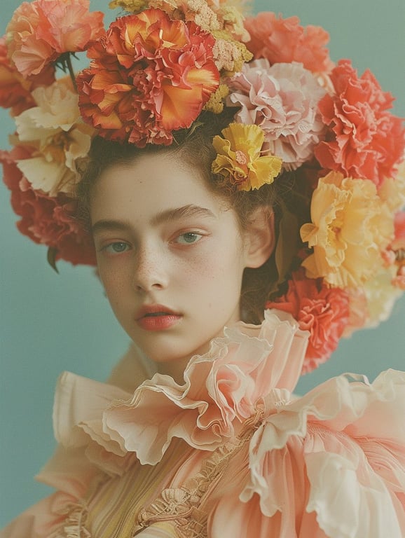 A simple, high-level prompt used to compare different AI models (Midjourney, GPT, Nano Banana Pro, Grok), requesting a photorealistic portrait of a fashion model wearing a huge flower hairband, rendered in an 8K disposable photography style.