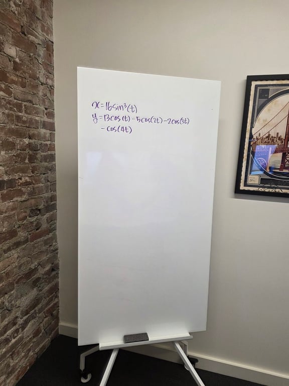 A short instruction-style prompt to draw a formula on a whiteboard and render its graph beneath, good for educational or technical illustrations.