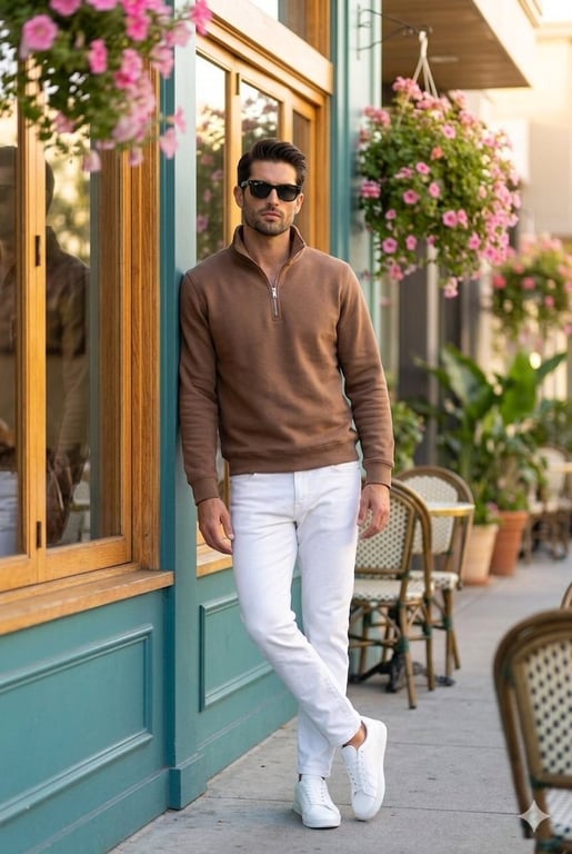 A prompt for Gemini Nano Banana Pro to generate a full-body portrait based on an uploaded photo for identity reference, featuring a person leaning against a teal wall in street fashion, surrounded by hanging pink flowers.