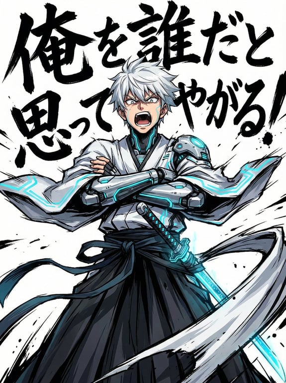 A detailed prompt designed to generate an explosive, high-impact anime illustration in the style of Gurren Lagann (Gaina-Dachi stance). It focuses on intense emotion, dynamic upward wind effects, bold linework, and includes a specific large, handwritten Japanese brush text overlay.