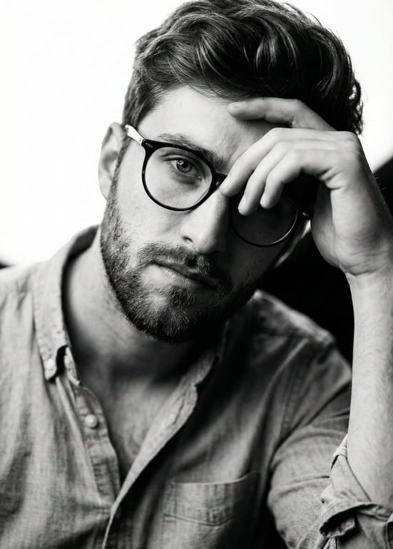 A prompt for generating a hyper-realistic, high-contrast black and white portrait with dramatic cinematic lighting. It specifies an extreme close-up using an 85mm lens, focusing on detailed textures like skin, hair, and fabric, and requires an uploaded face reference for identity locking.