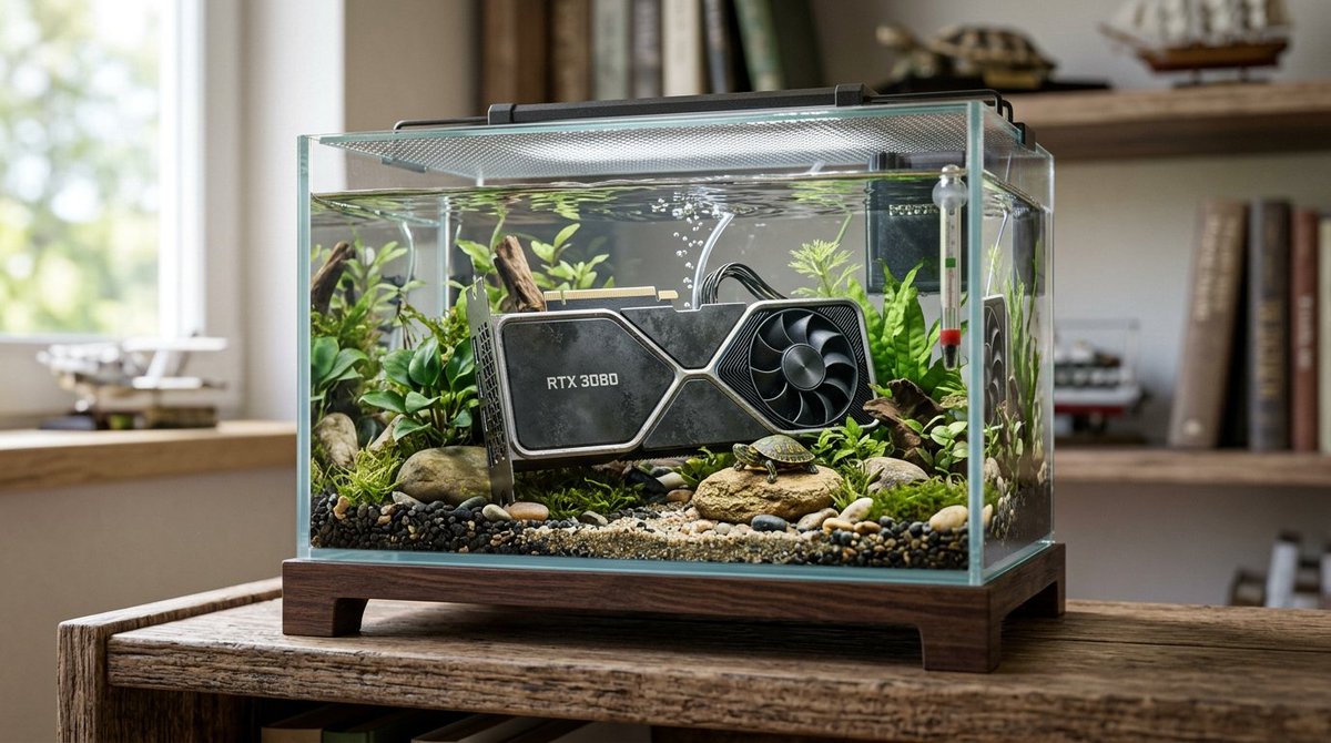 A reusable prompt template for generating a hyper-realistic, intricate miniature diorama of a turtle tank, where a specified object acts as the central decoration. This prompt is designed for Nano Banana 2 (used via Adobe Firefly) and emphasizes photorealistic miniature style, crystal clear water effects, and collector diorama quality.