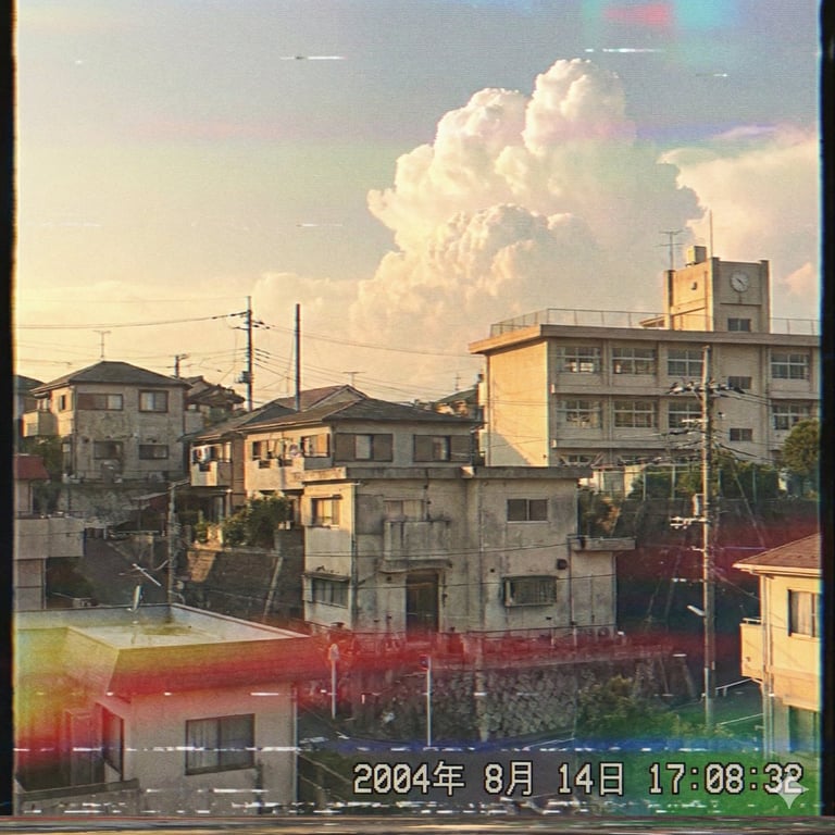 A prompt for Nano Banana Pro (via Google Gemini 3.1) to generate an image of a Japanese suburb with the atmosphere of an old 2000s footage.