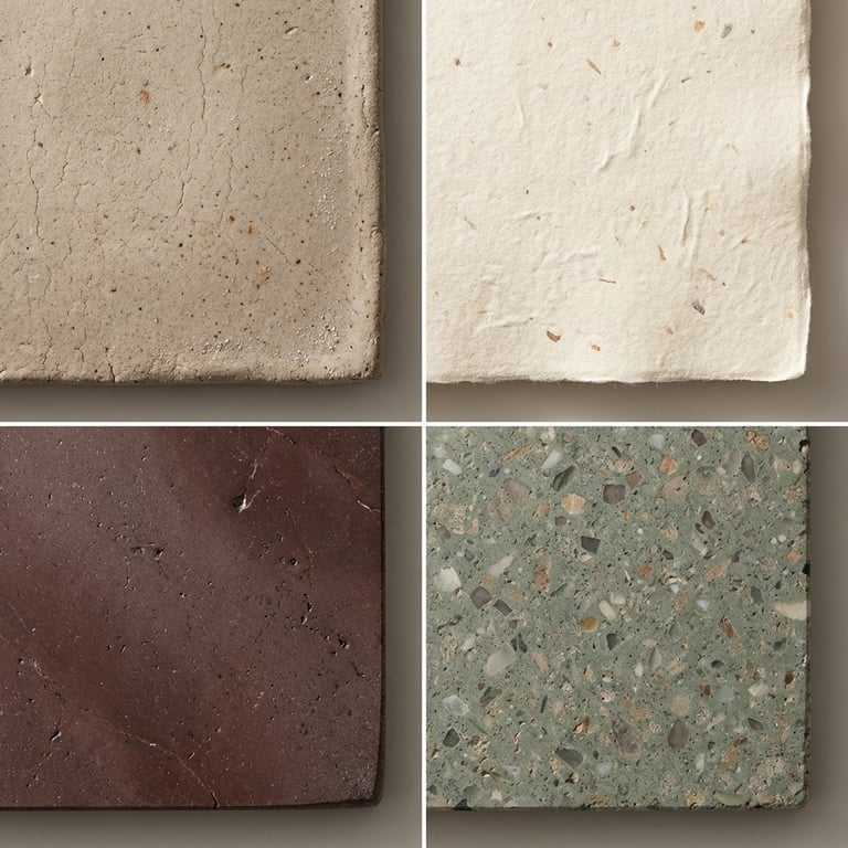 A prompt designed to stress-test the material realism capabilities of an image generator by requesting an extreme close-up surface study. It specifies realistic textures (stone, ceramic, or paper), soft grazing light to reveal micro-details, natural imperfections, and a neutral monochrome palette.