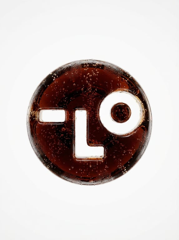 A detailed prompt for generating a minimalist 3D rendered image of an amulet made out of cola, floating against a solid white background. The prompt specifies soft diffused light, a vertical camera angle, tight framing, and a balanced composition.