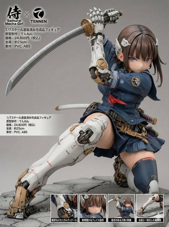 A detailed, structured prompt designed to transform a reference image of a character into a photorealistic PVC figure product introduction layout, complete with product information, logos, and close-up views. The prompt supports Japanese, English, German, and French text generation for the product details and requires a reference image of the character.