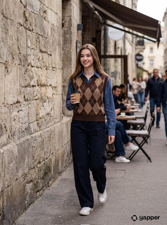 A photorealistic image generation prompt for Nano Banana 2, focusing on a young woman in casual wear walking in an aesthetic urban setting with soft natural lighting.