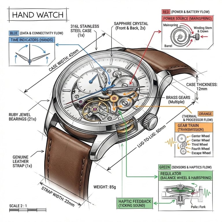 A template prompt for creating a technical infographic of any object, using a 45-degree isometric 3D perspective, combining photorealism with black ink annotations and color-coded arrows for function/flow.