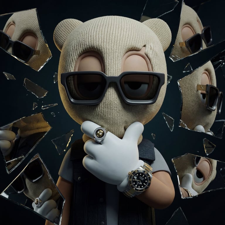 A highly detailed prompt for Gemini Nano Banana to create an ultra-realistic 8K cinematic portrait based on an uploaded face reference, featuring shattered glass, moody lighting, and specific luxury accessories (Rolex watch and a ring) referenced from a second image.