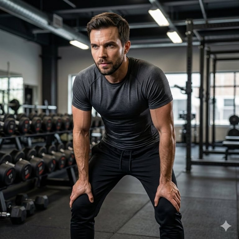 A detailed JSON prompt for generating an ultra-realistic fitness lifestyle photoshoot of a male model (using a reference image for identity lock), focusing on dramatic gym lighting, high-end streetwear/athletic wear, and cinematic contrast to achieve a luxury athletic brand campaign aesthetic.