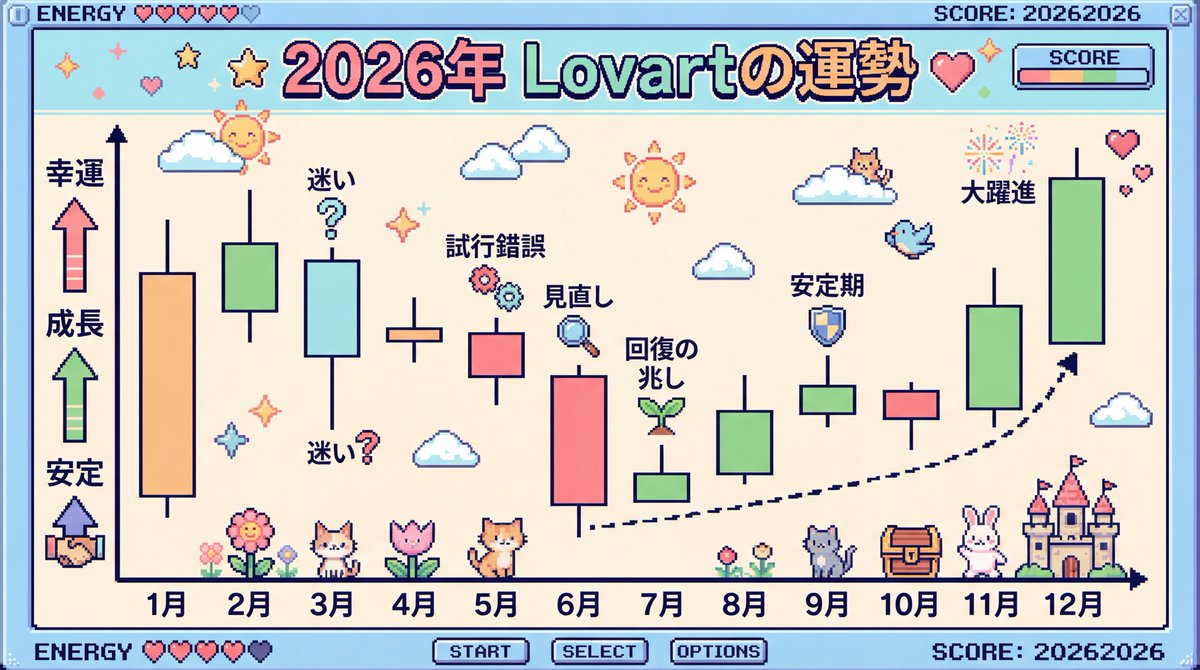A detailed prompt for Nano Banana Pro to generate a fortune telling visualization for the year 2026 in the style of Super Famicom pixel art, showing monthly flow and emphasizing a positive theme.