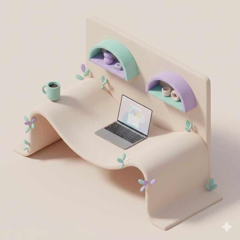A text prompt for Google Gemini Nano Banana Pro 3.0 to generate a 3D isometric illustration of a pastel home office scene where all objects, including the laptop and plants, are gently floating, creating a peaceful, futuristic, and clean UI-friendly mood.