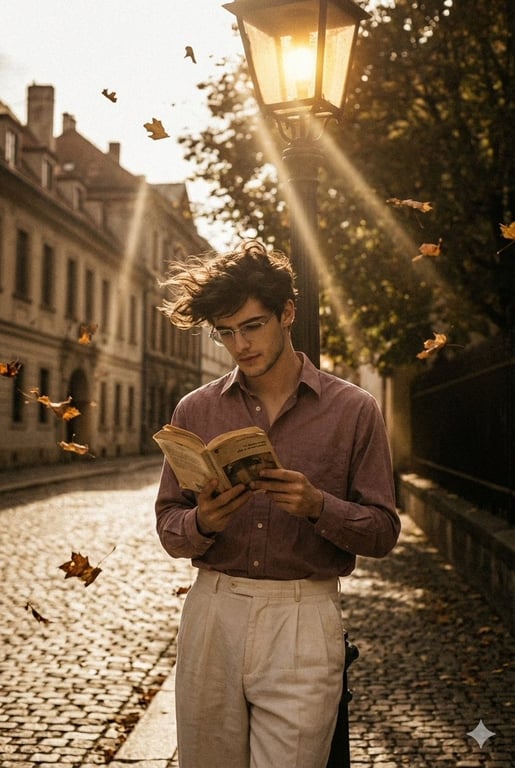 A prompt for Google Gemini Nano Banana Pro requesting a retro, vintage-inspired image based on a reference picture. It focuses on a dark-brown-haired boy with a '90s movie baddie' aesthetic, wearing specific clothing, standing under a street light, with dramatic contrasts and a windy, romantic atmosphere.