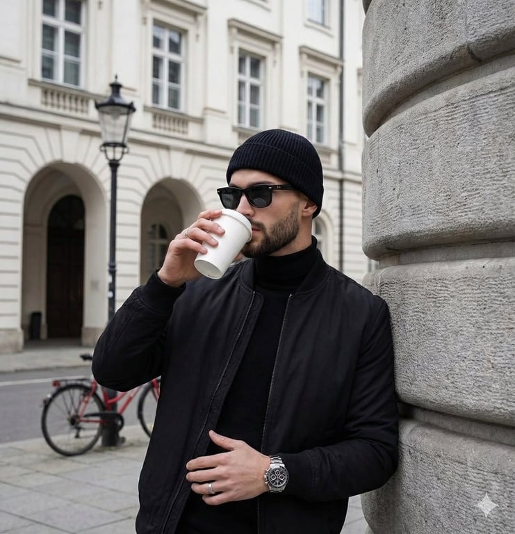 A highly detailed, structured prompt for generating an editorial photograph, focusing on composition, color profile, lighting, and technical specifications to achieve a sophisticated, polished urban portrait style with high contrast and soft, diffused lighting.