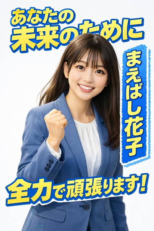 A detailed prompt designed to generate an election poster style illustration, tested successfully on both ChatGPT and Nano Banana Pro. It specifies aspect ratio, background, text styling, subject pose, clothing, and includes negative prompts to avoid unwanted styles.