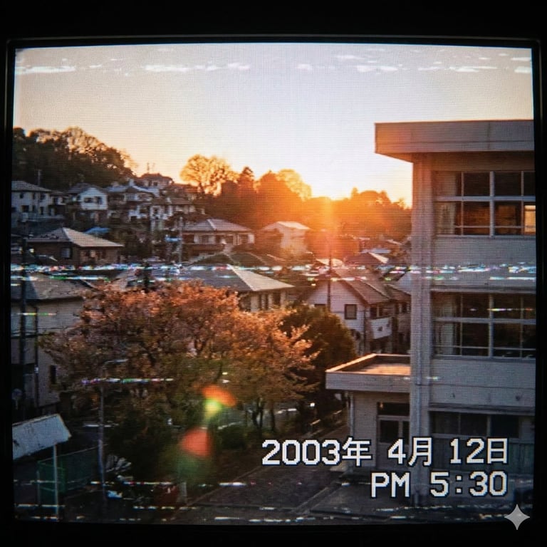 A prompt for the Nano Banana Pro (Gemini 3.1 image generator) to create an image depicting a Japanese suburb in the 2000s, styled like old footage, evoking a sense of nostalgia.