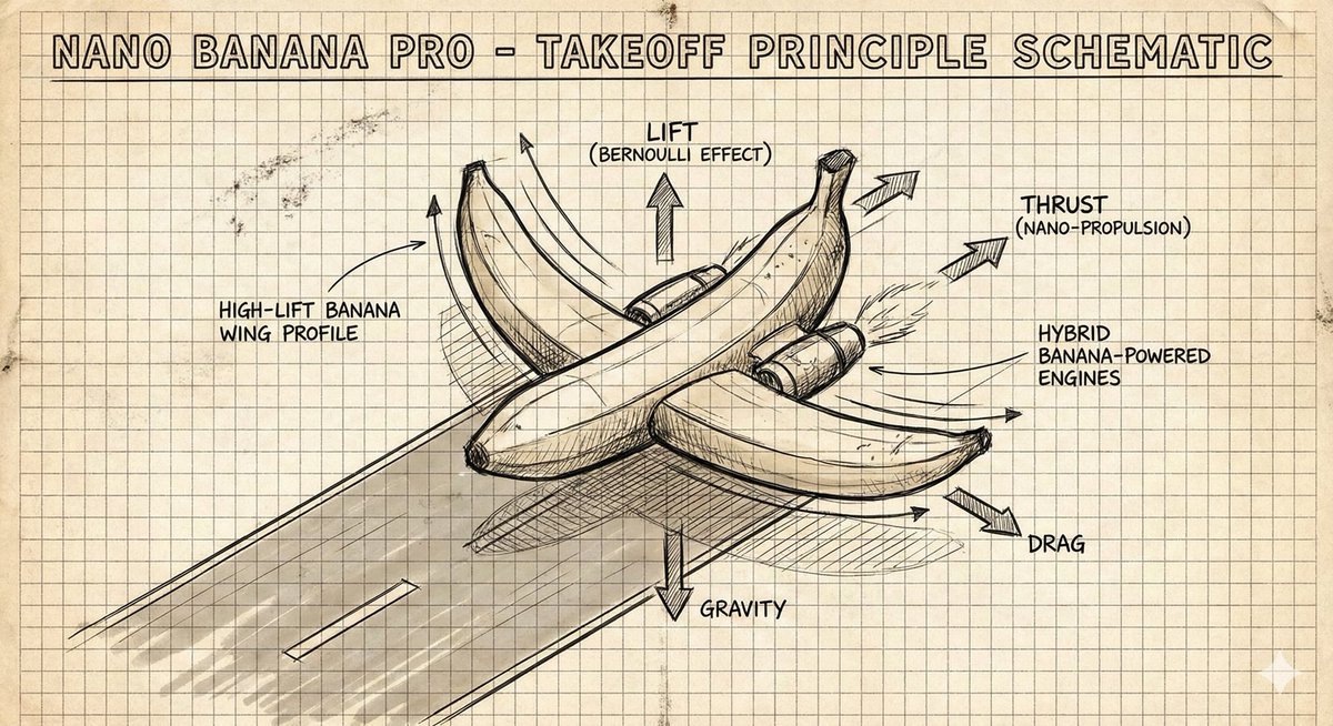 A prompt template for Nano Banana Pro used to create a hand-drawn, isometric schematic diagram of any object or concept, with examples provided for the principle of aircraft takeoff and the inside of the human brain.