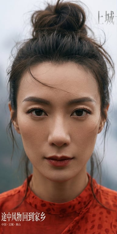 An extremely detailed, multi-section prompt template designed for Nano Banana Pro to achieve 98-100% accurate replication of a reference image's subject (an East Asian female) and style, combining the aesthetics of famous photographers (Steven Meisel, Paolo Roversi) with specific facial features, hair, clothing (a warm tan puffer jacket and burgundy vest), and a 'shy-sweet' expression.