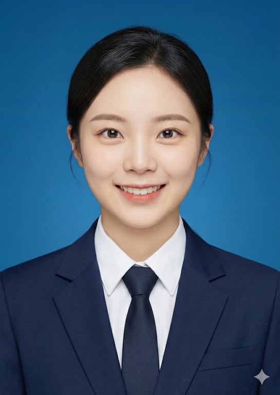 A simple prompt for turning a portrait into a 2-inch professional ID photo with a specified background color, clothing and expression.