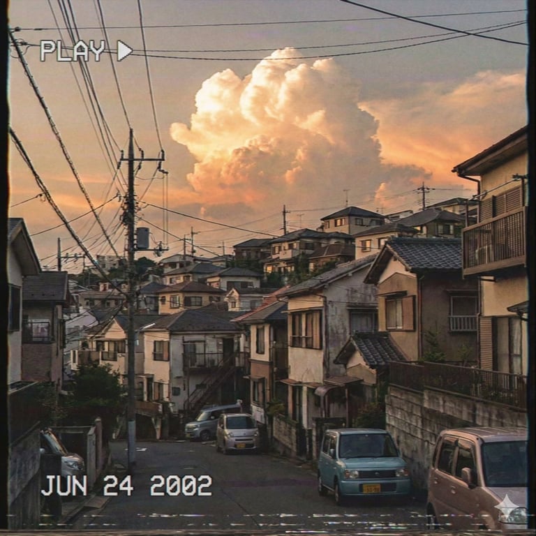 A prompt used with Google Gemini 3.1's image generator, Nano Banana Pro, to create an image of a Japanese suburb with a nostalgic, old footage atmosphere from the 2000s.