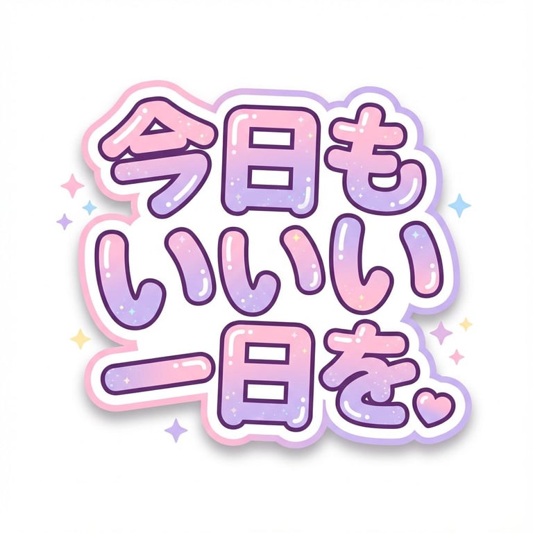 A detailed prompt for generating a kawaii (cute) Japanese anime-style POP typography sticker using Nano Banana Pro. It specifies thick, rounded bubble letters, pastel gradient fills, glitter texture, glossy highlights, and a double-stroke outline for a sticker effect, using the text 'ããã¦æªæ¥ã¸' ('And to the future').