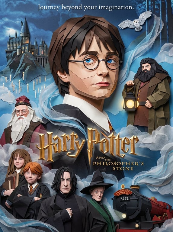 A detailed prompt for transforming a movie poster into a photorealistic origami paper craft. The instruction emphasizes preserving all compositional elements, colors, and typography, while rendering every surface with precise folds, creases, and visible paper texture, set in a studio render.