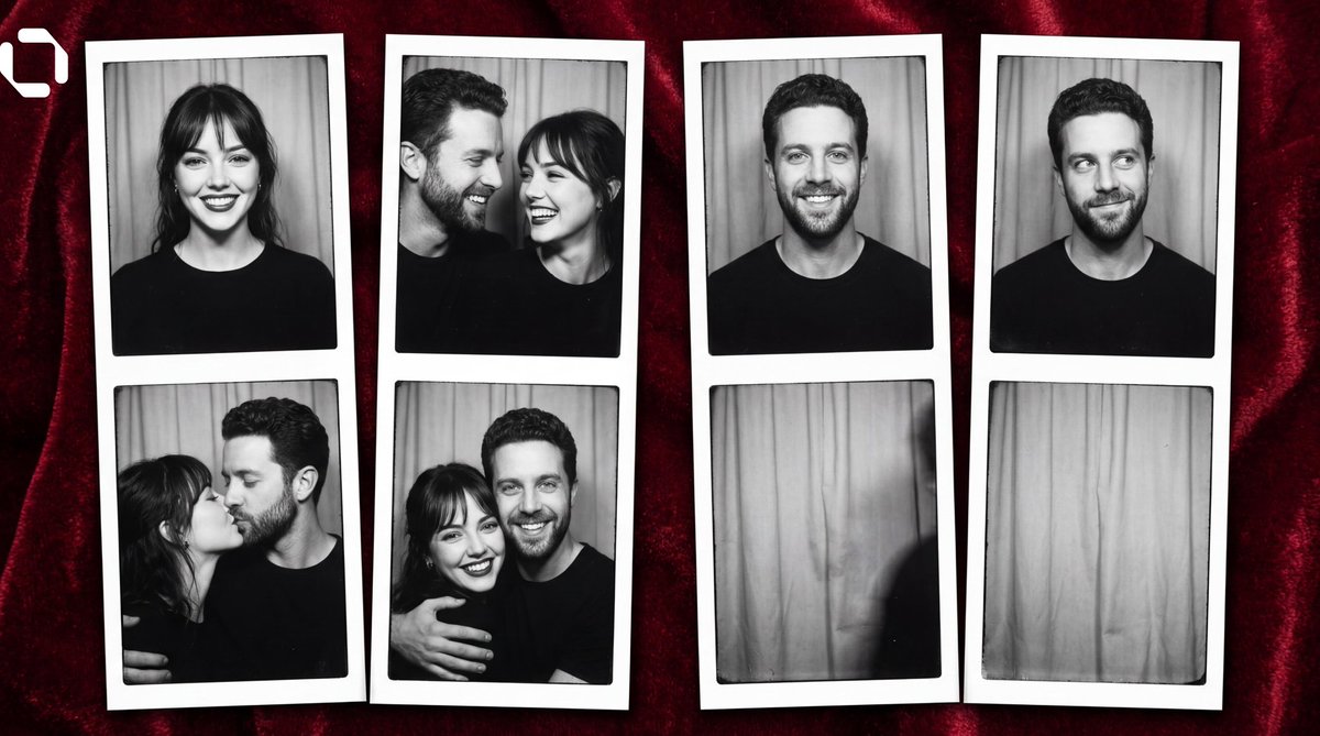 A complex narrative prompt for Nano Banana 2 requiring the generation of two side-by-side photo booth strips (8 frames total) in black and white, depicting a story where one person gradually leaves their strip and appears in the other person's strip, emphasizing facial feature preservation and specific frame content.