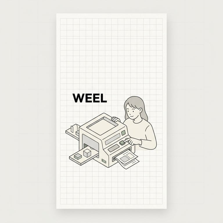 A highly detailed prompt for generating a premium, minimalist, editorial-style smartphone wallpaper (9:16 vertical format) with a Japanese aesthetic. It features a single young woman interacting with a subtle, abstract machine illustration, using a muted sage green and off-white color palette. The prompt is a customized version of a template found online, demonstrating how to change elements like the subject, text, and color.
