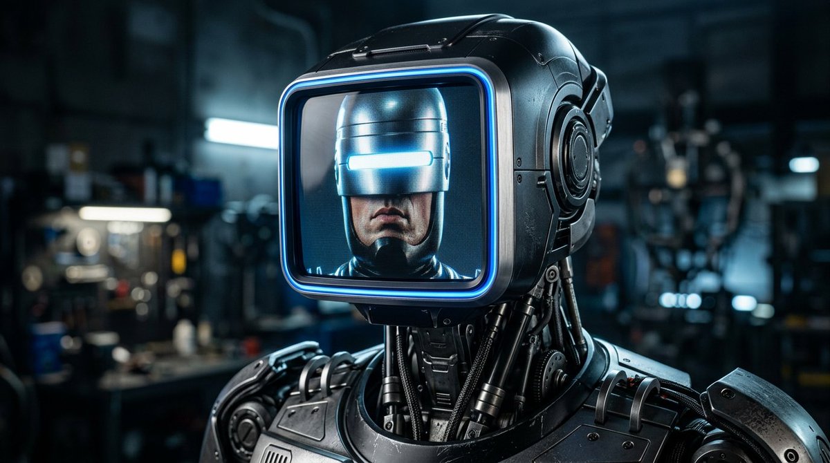A reusable prompt template for generating hyper-realistic, sleek modern robots with a large rectangular LCD screen as a face, emphasizing industrial design, dramatic lighting, and high detail. The prompt is designed for Nano Banana (used in Adobe Firefly).