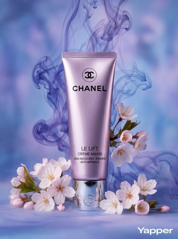A detailed prompt for generating a slow-motion video advertisement for a cosmetic product, based on an uploaded static image. The prompt strictly controls camera movement, lighting, and color, focusing on animating surrounding voluminous blue swirling clouds in an ultra-slow, luxurious motion around the stable, centered product.