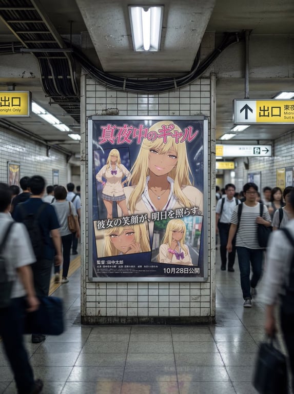 Two detailed prompt variations for Nano Banana 2, designed to transform an input character image into a photorealistic advertisement poster displayed in a busy Japanese subway passageway. The first variation includes 'Portfolio Expression' for dynamic cropping and varied poses/expressions, while the second maintains the original character's appearance more strictly. This prompt requires an input character image.