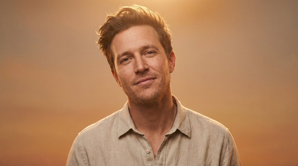 A prompt for generating an ultra-realistic, medium chest-up portrait of a confident individual in a beige linen shirt, using warm rim lighting and a shallow depth of field for an editorial fashion aesthetic.