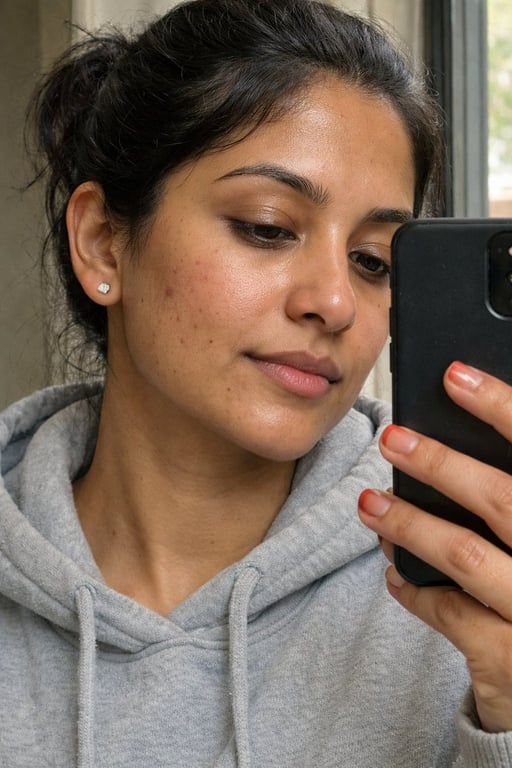 This prompt, extracted from the ALT text of the image, is designed to generate an ultra-realistic, high-detail portrait of a young woman with specific features, pose, and attire, set against a blurred, moody background, emphasizing cinematic lighting and texture.