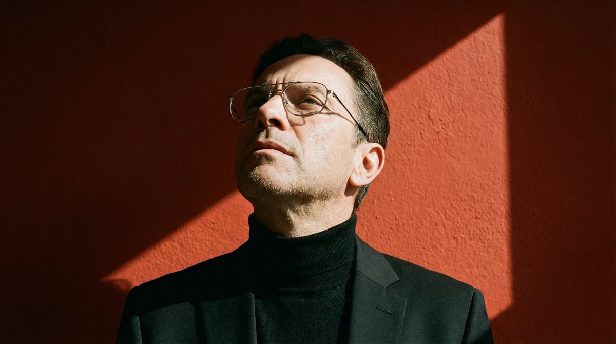 A prompt for creating a bold, ultra-realistic portrait featuring sharp triangular shadows cast by diagonal sunlight on a deep red-orange background. The subject wears a black blazer and turtleneck, emphasizing hard directional lighting and high micro-detail.