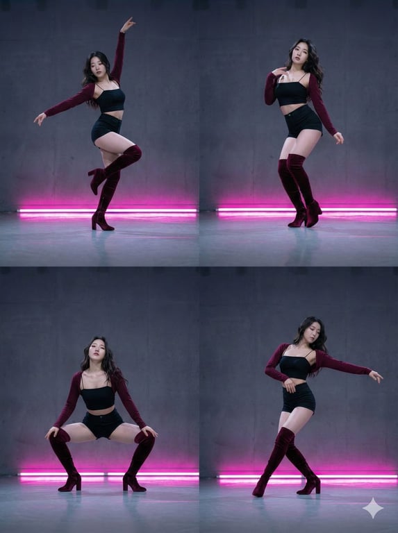 A structural prompt instructing the AI to create a 2x2 grid composition containing four vertical images. The key requirement is maintaining consistent appearance, outfit, lighting, and style across all four panels while featuring a different pose and angle in each.