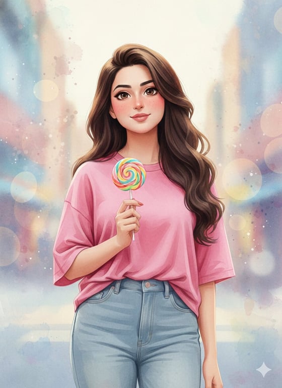 An image-to-image prompt designed to preserve the identity and facial features of an uploaded person while applying a 3D anime watercolor style. It specifies details like expressive eyes, flushed cheeks, casual clothing, and a soft abstract watercolor background with painterly textures.