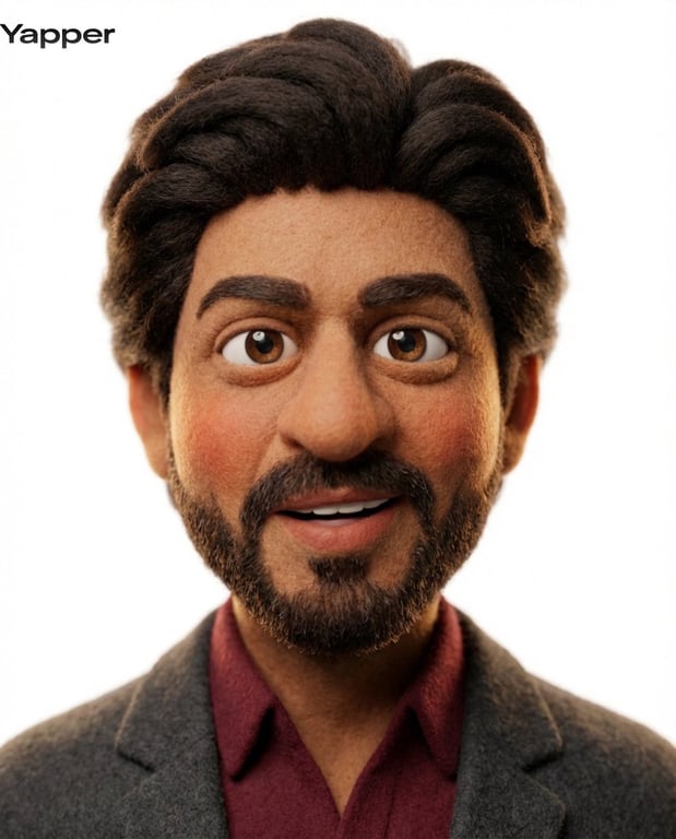 A prompt for transforming an uploaded image into a stylized 3D claymation character, emphasizing soft felt/fuzzy textures, exaggerated facial features (Pixar-style), and soft studio lighting for a stop-motion aesthetic.