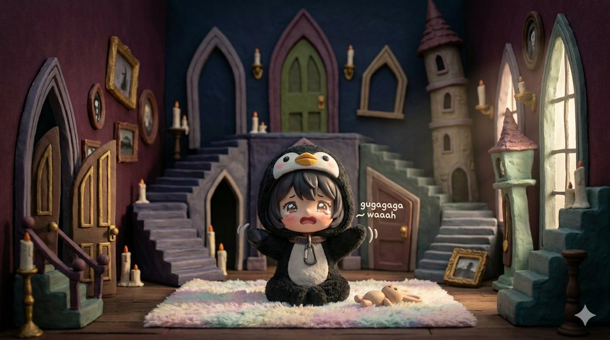 A prompt for Google Gemini Nano Banana to generate a sequence of actions featuring an ultra-detailed 3D tiny anime-style girl named Gugu. The prompt specifies her appearance (chibi-style, oversized hoodie, soft features) and outlines a series of 10 frames/actions in a whimsical, cozy setting, emphasizing soft lighting and pastel tones.