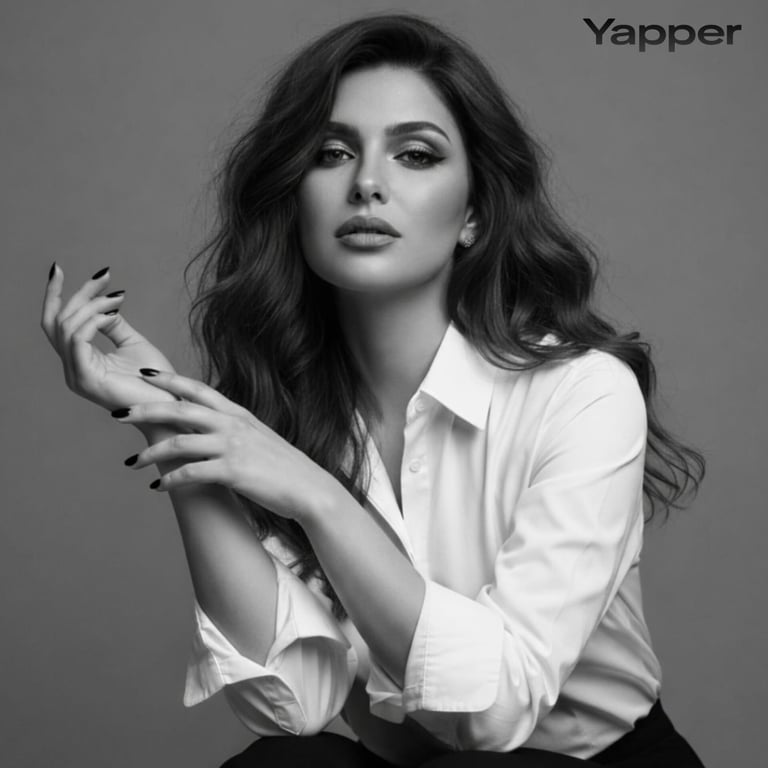 A detailed prompt for generating a black-and-white fine art studio portrait using Nano Banana 2. The prompt specifies a seated subject (based on an uploaded person), relaxed pose, slightly messy hair, natural skin tones, a clean white shirt, a calm expression, cinematic angle, minimalist grey backdrop, soft diffused cinematic lighting, and ultra-realistic, high-contrast textures in 8K resolution.
