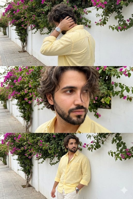 A highly detailed, structured prompt designed to generate an ultra-realistic vertical photo simulating a smartphone burst shot, ensuring perfect facial identity consistency across three stacked frames while depicting a man in specific clothing and location with natural imperfections.