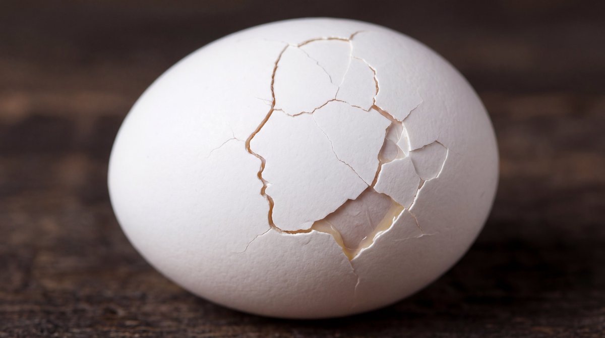 A prompt for generating a photorealistic image of a white egg with cracks forming a simple, distinct outline of a specified shape. It emphasizes the contrast between the smooth egg surface and the jagged cracks against a dark background.