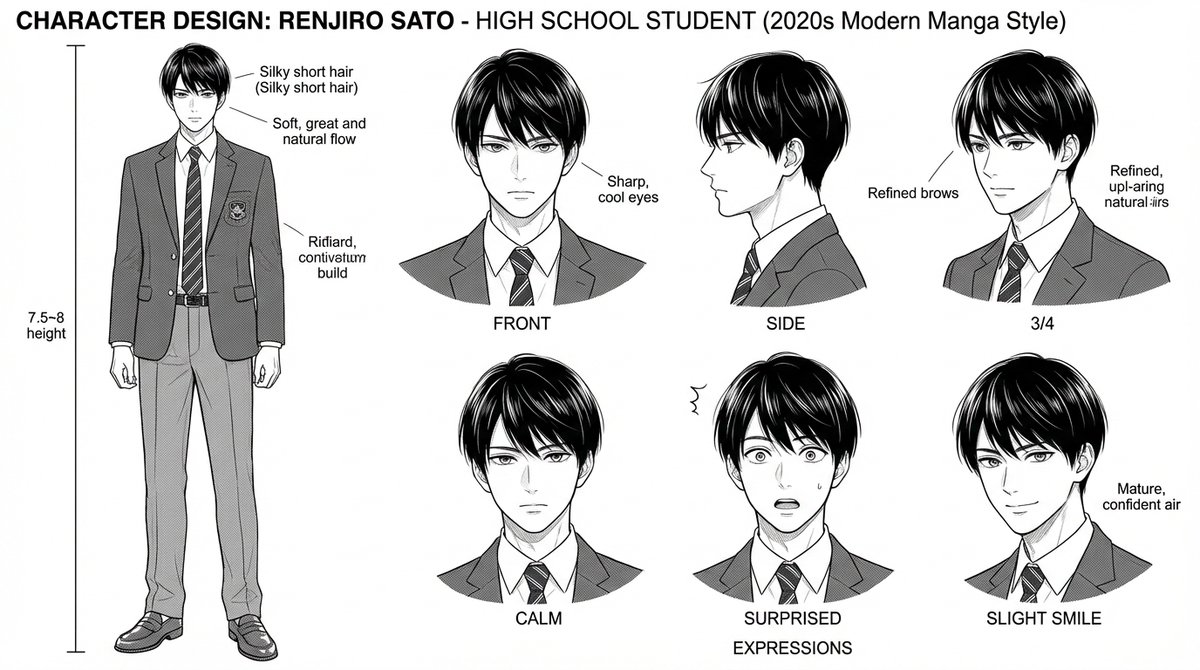 A prompt designed to generate a complete Japanese manga page with a dynamic and varied panel layout, specifying six panels of different sizes and shapes to create visual tension and movement, set in a Sapporo winter cityscape, using ultra-thin linework and screentone shading.