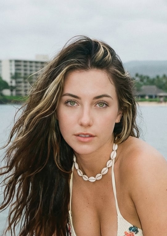 A highly specific prompt designed to create a four-view reference sheet (front, left profile, right profile, back) of a young adult woman for character design or 3D modeling purposes. It mandates a plain white background and minimal attire to clearly display detailed body proportions and muscle definition.