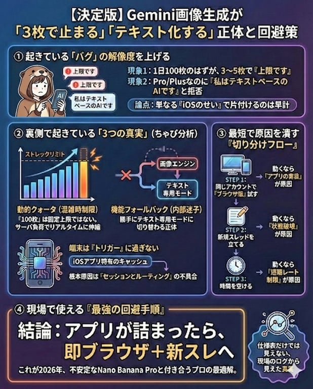 A troubleshooting prompt used when the Gemini model (which powers Nano Banana) fails to generate an image and outputs text instead, reminding the AI of its role as an image generation model.