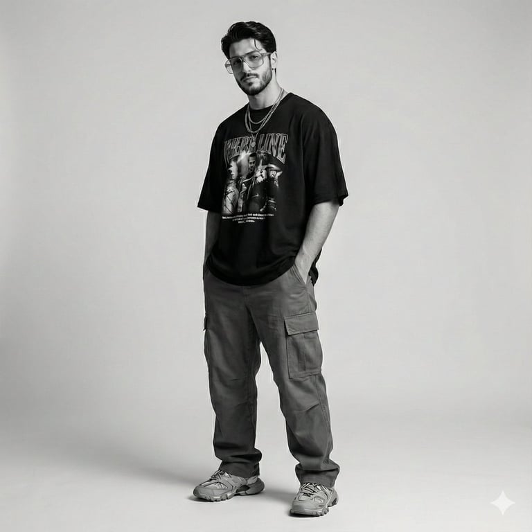 A detailed JSON prompt for generating a modern studio photoshoot of a man, styled in Gen-Z inspired streetwear, focusing on a relaxed, effortless aesthetic with minimal studio lighting and high-resolution quality. This prompt requires a reference image of the subject.