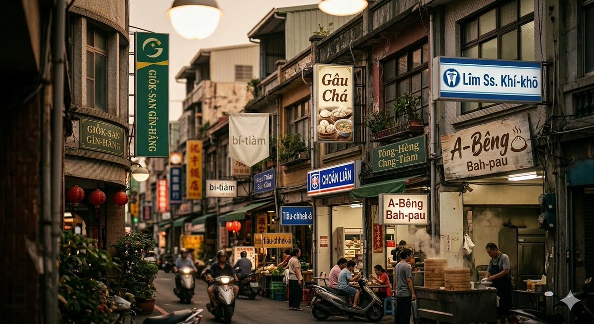 The user tested Nano Banana 2's ability to generate a Taiwanese streetscape where all signs are replaced with Romanized Taiwanese text. The prompt used for this image generation is explicitly provided.